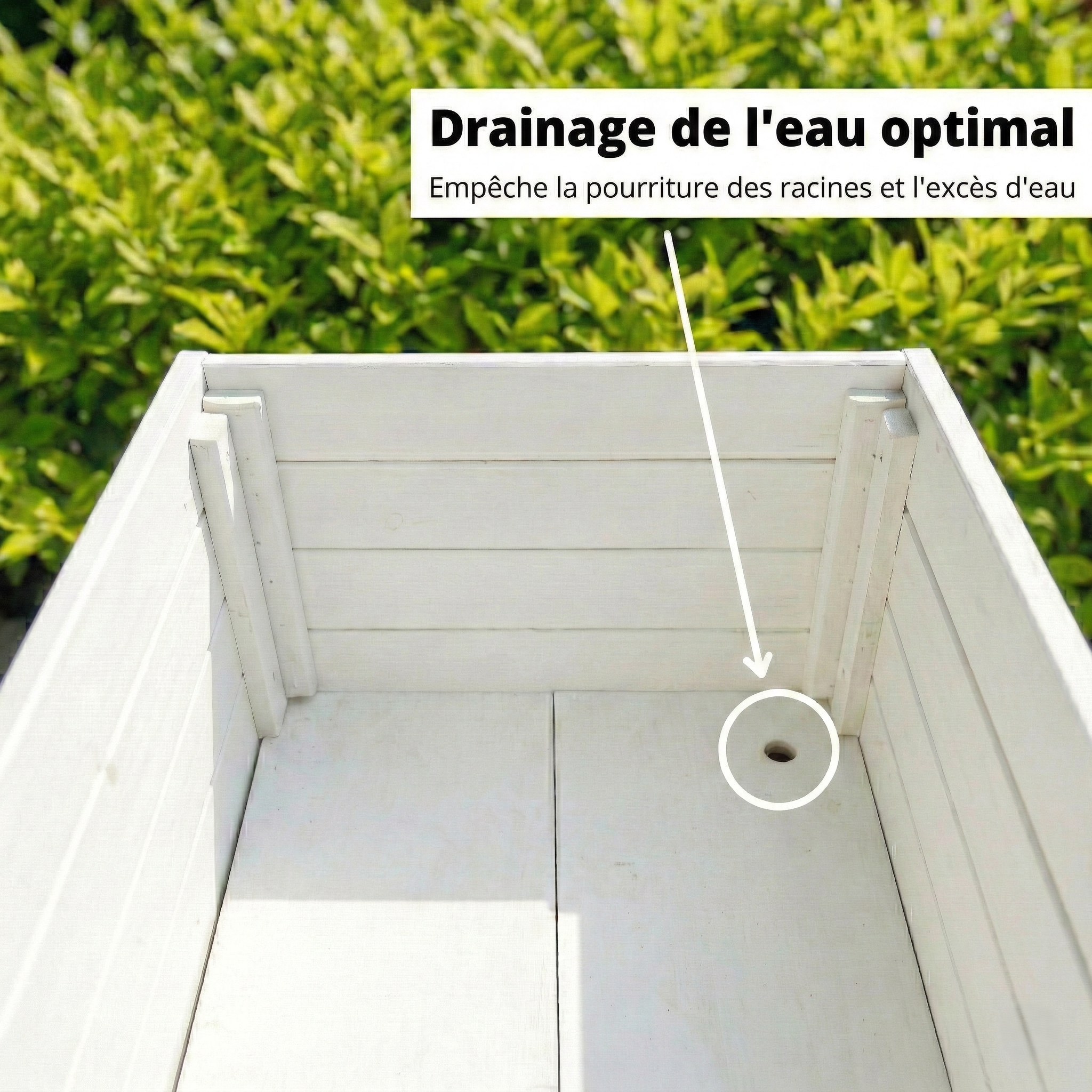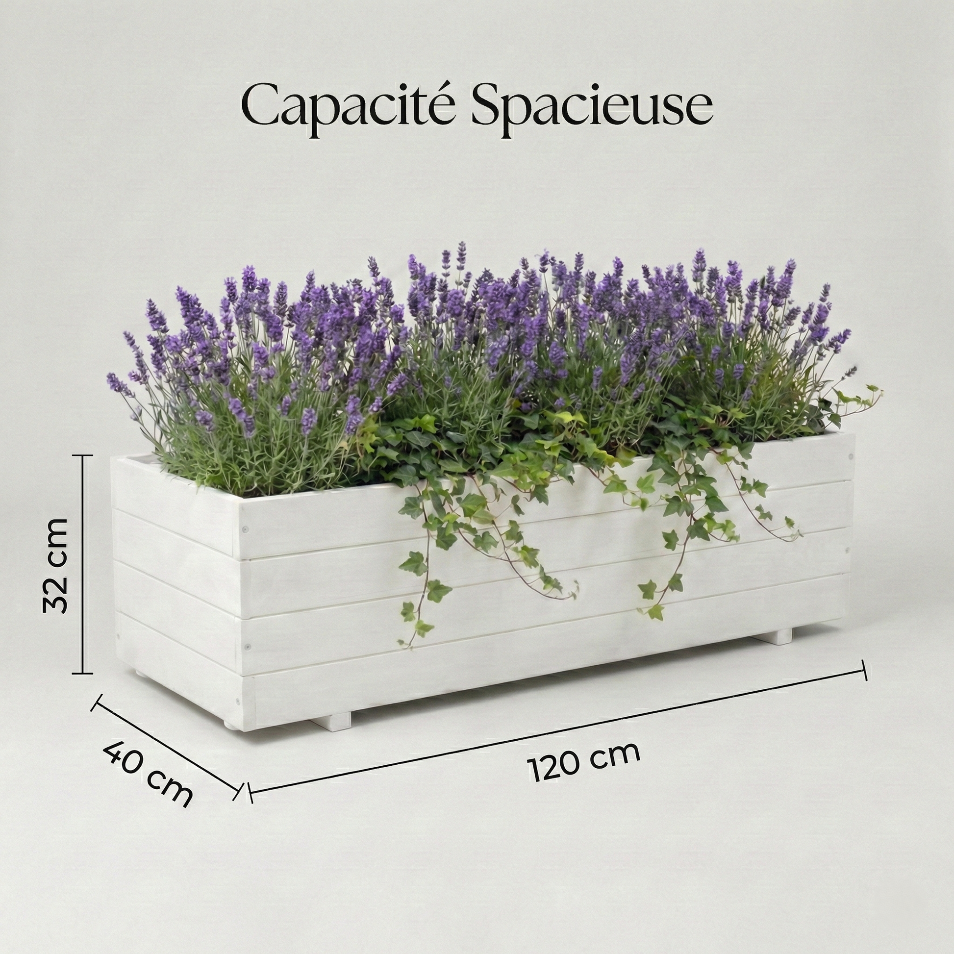 Vous cherchez une solution élégante, robuste et écologique pour cultiver vos plantes, fleurs ou herbes aromatiques préférées ? Fini les pots fragiles et abîmés ! Le pot en bois IvoQ allie un design moderne et épuré à la solidité naturelle de l’épicéa massif certifié FSC. Que vous souhaitiez créer un potager sur votre balcon ou embellir votre terrasse, ce généreux pot blanc (120 cm de large) offre un support idéal et durable.