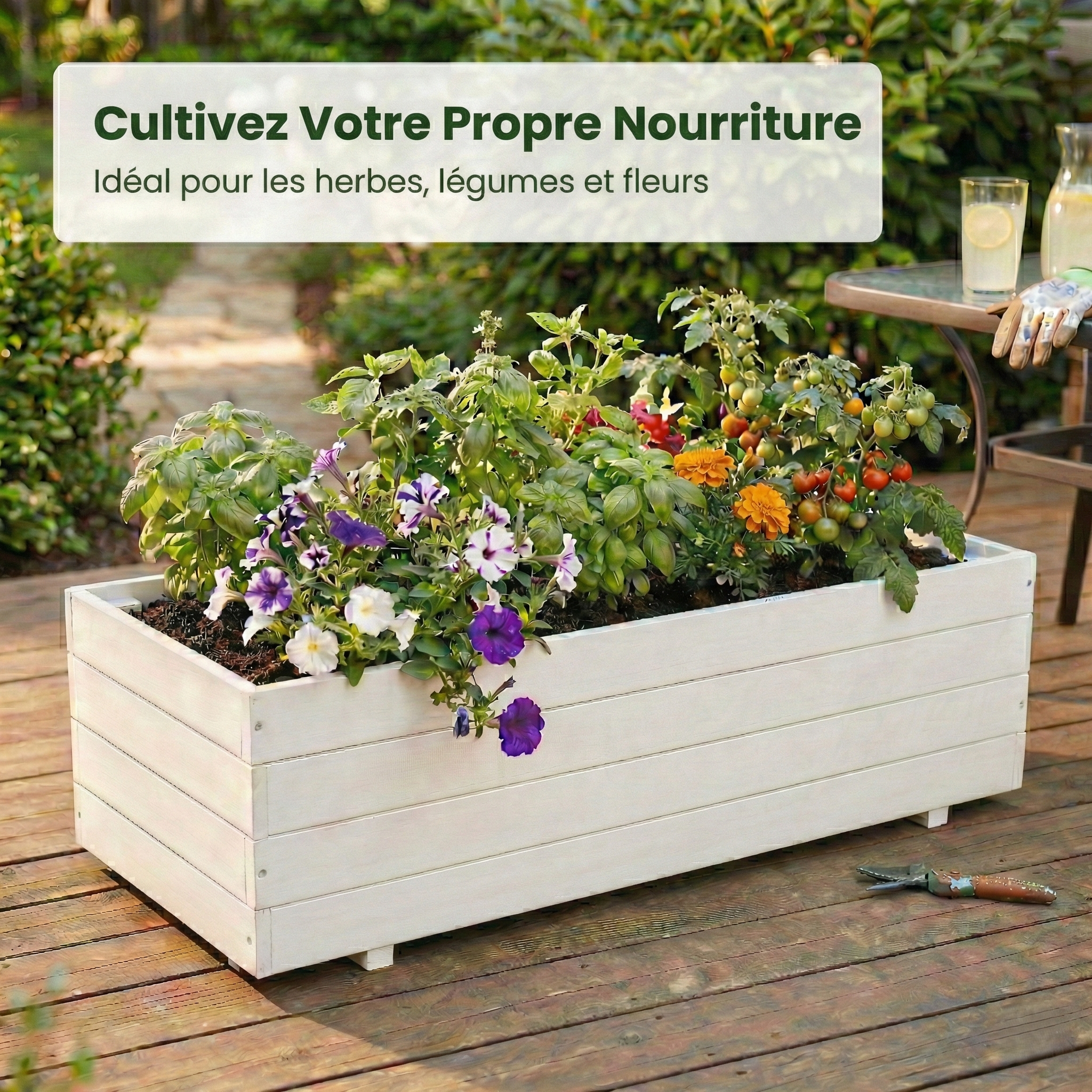 Jardinière d'extérieur en bois IvoQ - Bois certifié FSC - 120 x 40 x 32 cm - Blanc