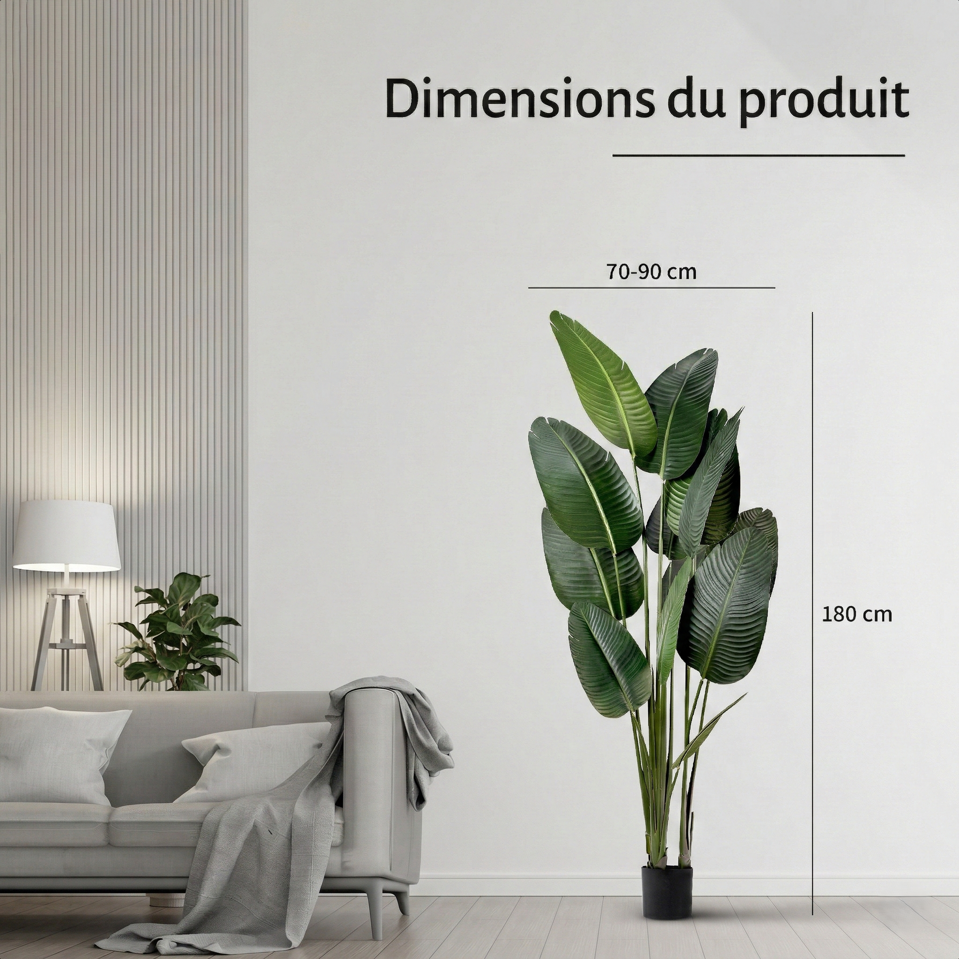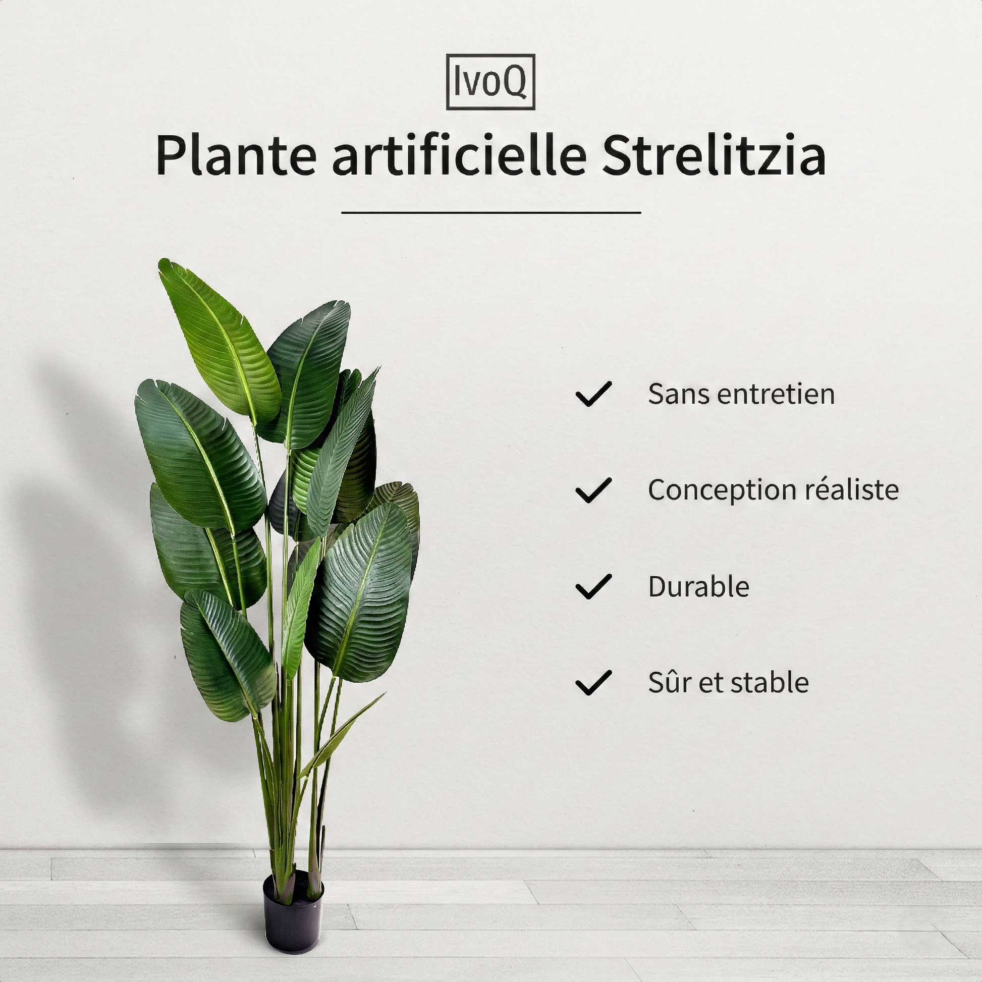 Apportez une touche d'élégance tropicale à votre intérieur avec la plante artificielle Strelitzia d'IvoQ . D'une hauteur de 180 cm, cette magnifique plante imite à la perfection une vraie grâce à sa conception artisanale et réaliste.