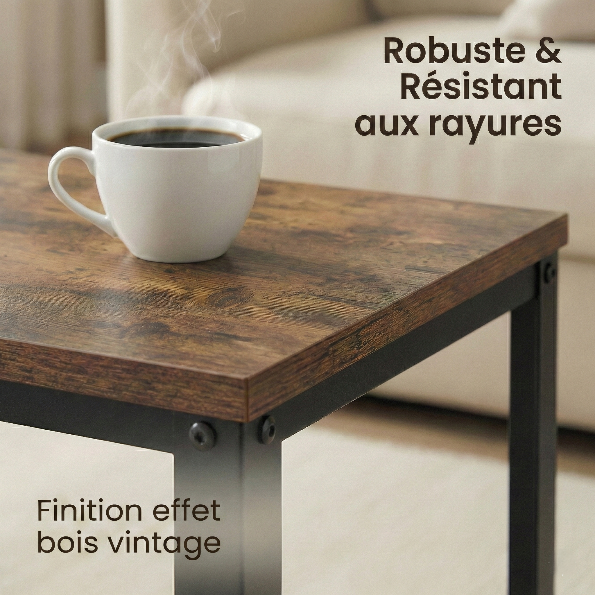 ✅ Résistant aux rayures et à l'usure : Le plateau de la table bénéficie d'une finition de haute qualité résistante aux rayures, aux taches et à la chaleur. Vous pouvez y poser votre tasse de café chaude sans crainte ; cette table restera impeccable pendant des années.