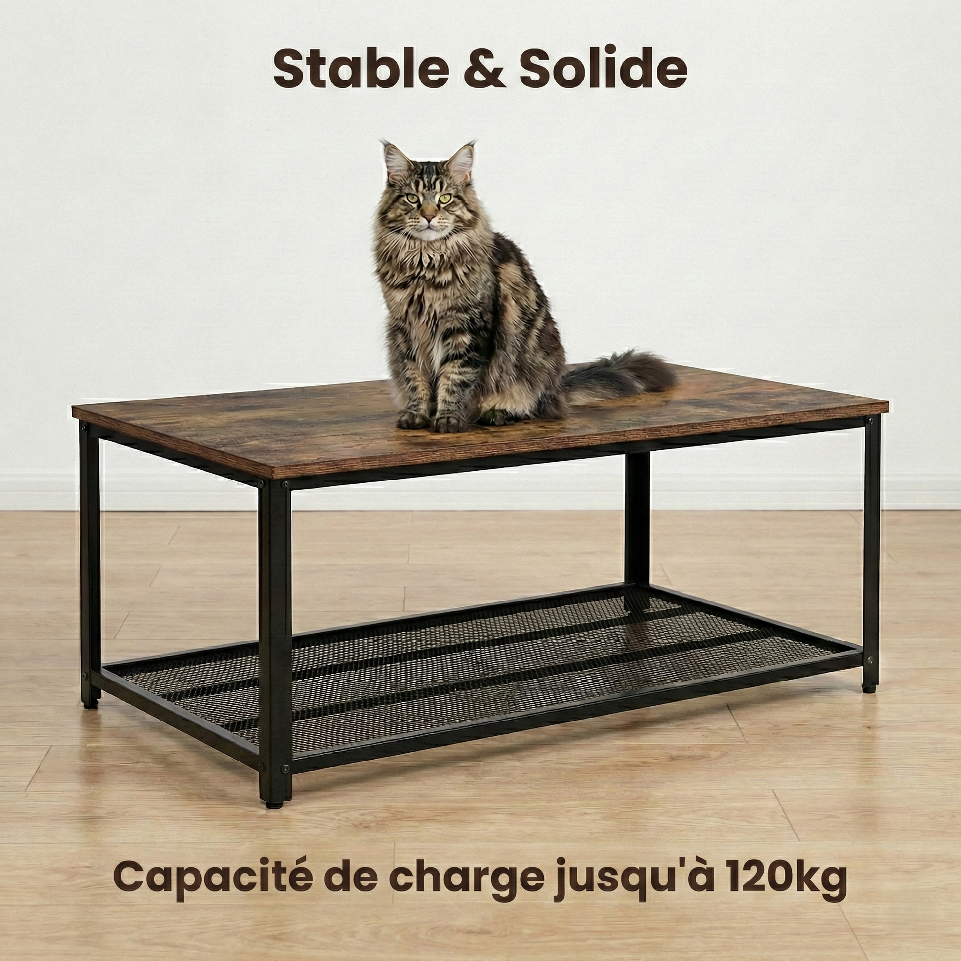 ✅ Solidité exceptionnelle (charge maximale de 120 kg) : Grâce à sa structure métallique renforcée et à son plateau épais, cette table supporte facilement les objets lourds. Même si vous (ou votre animal de compagnie) vous appuyez dessus un instant, elle restera parfaitement stable.