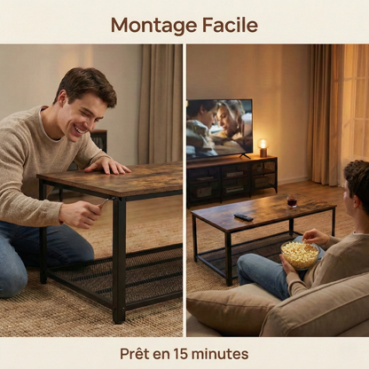 Vous recherchez l'équilibre parfait entre style industriel et robustesse à toute épreuve ? La table basse industrielle IvoQ allie l'aspect chaleureux du bois vintage à une structure en acier ultra-résistante. Un véritable atout charme, capable de résister aux chocs.